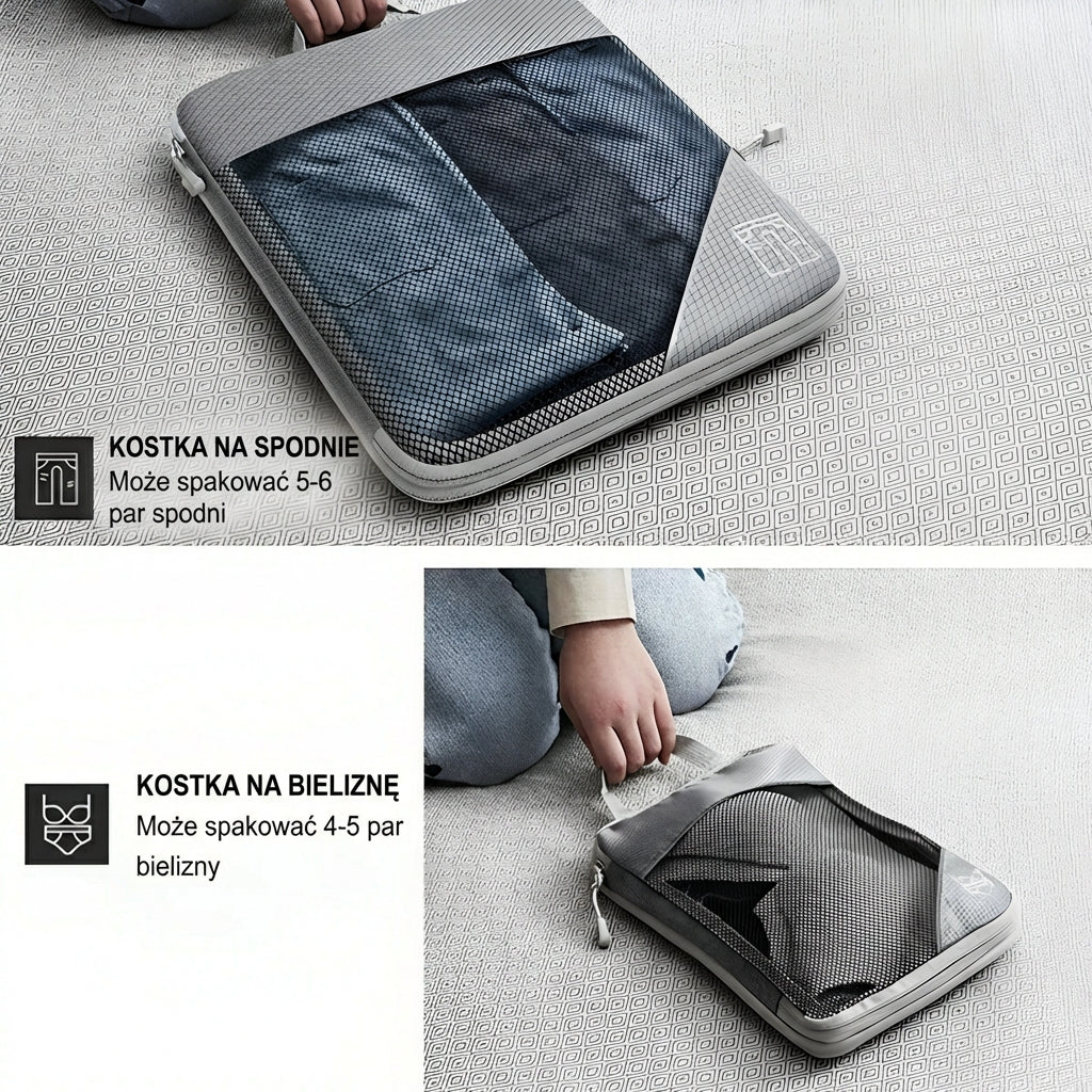 Nie cierpisz zostawiać stylizacji w domu? Nasze kompresyjne organizery do pakowania to prawdziwa magia oszczędzania miejsca. Nie kupuj większej walizki ani nie płać za dodatkowy bagaż.