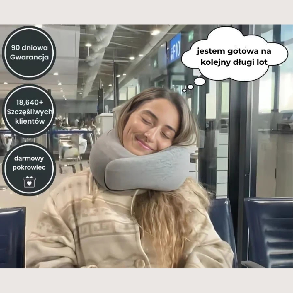 „Moja szyja w końcu przestała boleć, a włosy wyglądają świetnie! Ta poduszka totalnie zmieniła moje podróże. Polecam każdemu, zarówno na co dzień, jak i na dłuższe trasy.”